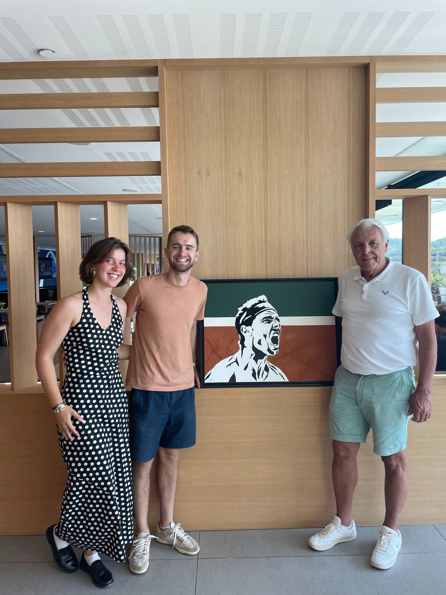 Nous nous étions lancé un défi : rencontrer Rafael Nadal et lui offrir un portrait que j’ai réalisé de lui. Nous voulions rendre hommage à ce joueur qui a tant inspiré la jeunesse, et nous-mêmes. Nous nous sommes donc rendus à son académie de tennis à Majorque. Malheureusement, nous n’avons pas pu le croiser, mais nous avons eu l’honneur de rencontrer son père, Sebastián Nadal, profondément touché par notre démarche, qui a décidé de conserver le tableau pour l’exposer au sein de l’académie.