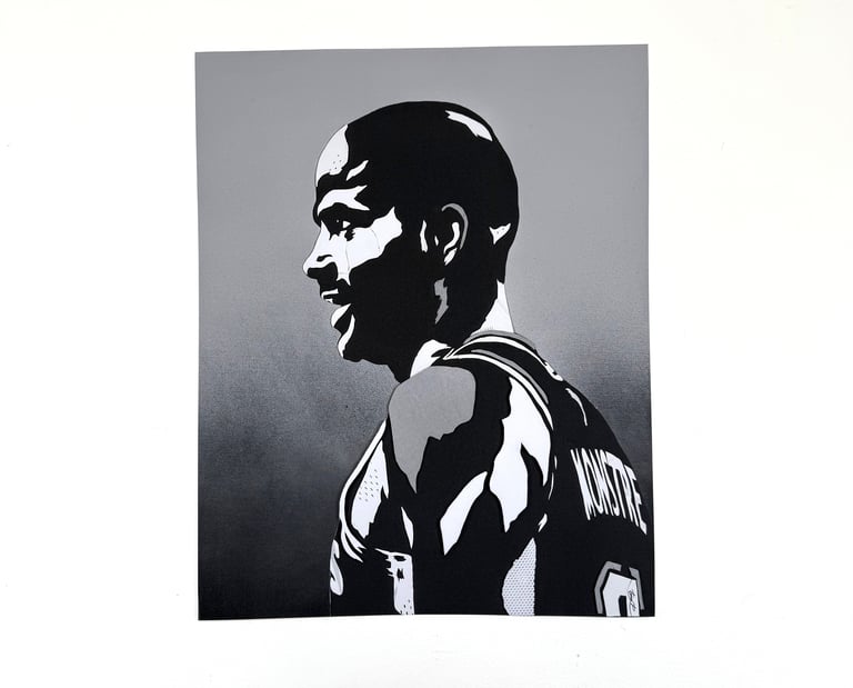 Après avoir offert l’œuvre originale à Tony Parker, je vous propose aujourd’hui une édition limitée et numérotée de ce portrait, réalisé à partir d’une Player Exclusive (une chaussure conçue exclusivement pour les joueurs NBA et celle-ci spécialement pour Tony Parker). "Eh oui, c’est un collage et non de la peinture !!!"